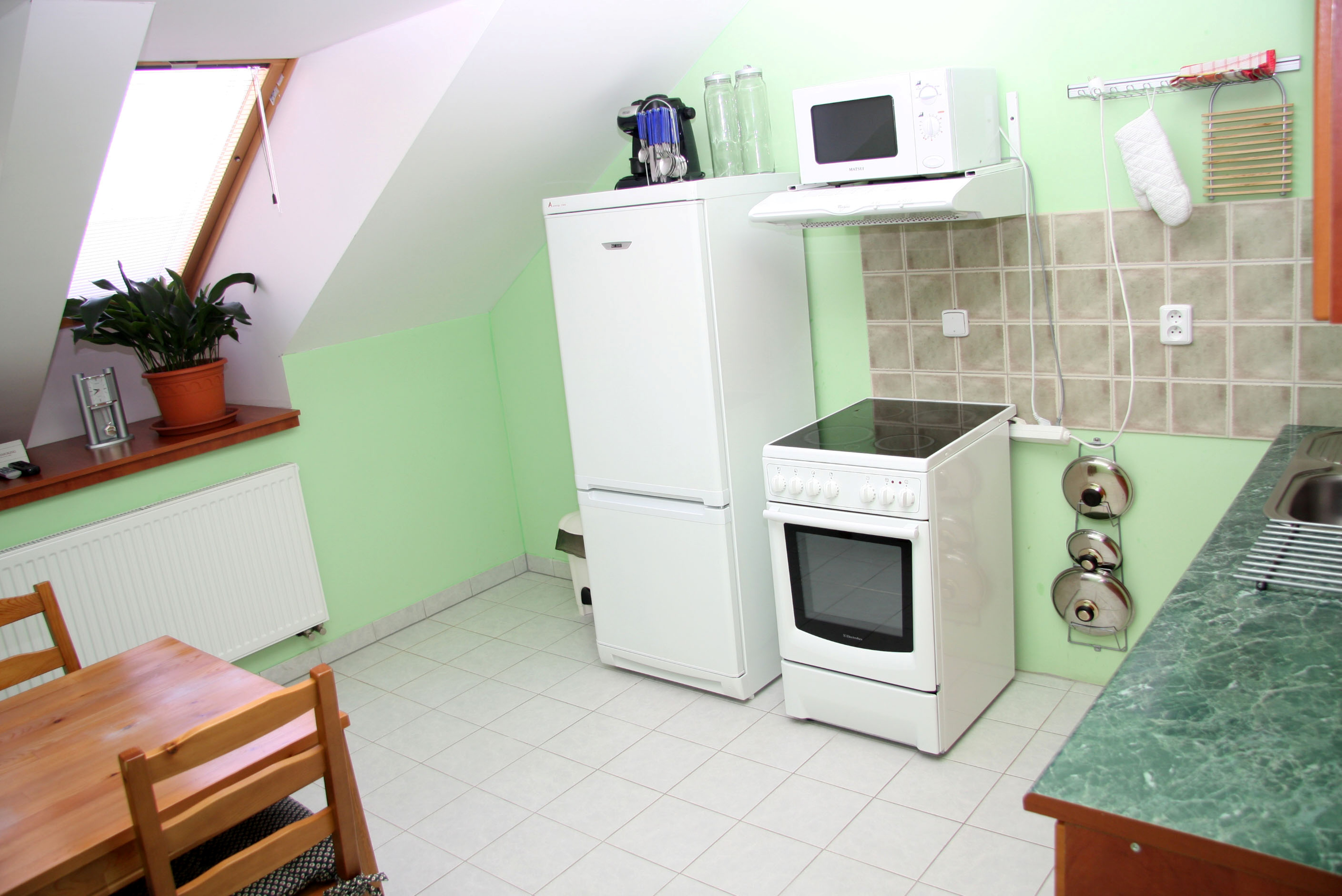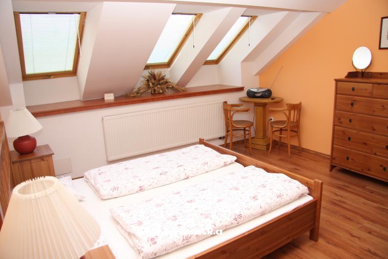 Luxusní podkrovní apartmán v centru Jičína. Trilo 4 - 2 dvoulůžkové ložnice s manželskou postelí, vybavená kuchyň( sporák, lednice, potřebné nádobí, ), TV, možnost připojení na internet, sociální zařízení v apartmánu.
